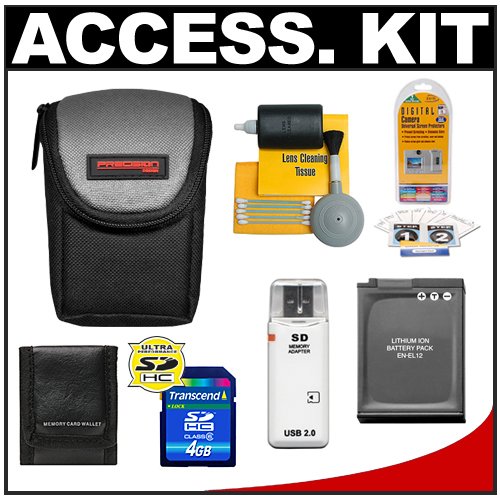 Buy Precision Design Compact Digital Padded Carrying Case + EN-EL12 Battery + 4GB SDHC Card + Cleaning Kit for Nikon Coolpix S70, S610, S610c, S620, S630, S640 & S710 Digital Cameras Now